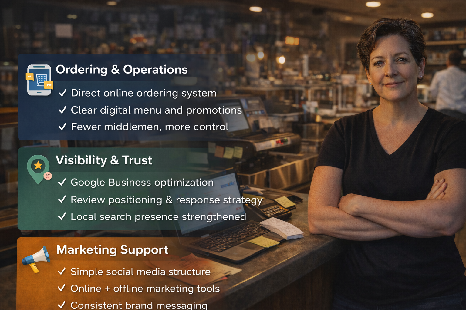 We love to connect with local restaurants to deliver simple, reliable systems that streamline ordering and daily operations. From online ordering and digital menus to Google visibility, reviews, and social media, we help restaurants show up where customers are already searching—online and in person.